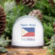 Personalised snow globe with the Filipino flag and the word PHILIPPINES below in the colours of the flag. Above, in blue letters, is a place for a name. Create something for yourself or a gift. Makes a lovely holiday gift or stocking stuffer.