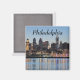 This is the beautiful skyline of the city of Philadelphia, taken at sunset from across the Delaware River at the Camden waterfront. The architecture of the skyscrapers of Philly are on display in this photo. Centre City, the downtown area of Philadelphia, is the focus of this photograph. The lights of the city cast colourful reflections on the water.