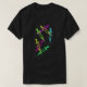 I give wanted to give this a 4 instead of a 5 because these Basic DARK T0shirts run unexpectedly SLIM or Narrow. Which is great if you do not have a potbelly, but I have a paunch. It isn't the shirt's fault that I've got a beer belly. The design and shirt itself is a quality cotton shirt. The color is more of a deep purple, but still a very pretty color. The Basic DARK T-shirts run a bit SLIMMER than the Basic Ts. The neck is a fraction narrower (or seems to be narrower) also. I'm a paunchy middle-aged woman and my neck is 12 inches (31cm) thick and the neckline fell about the same as in the photo of the man, and I had the desire to tug it a bit. So if you're a thick necked man or like loose shirts, be aware these are slimmer shirts. Once I get rid of my lockdown paunch it'll look great. The shirt washed well in cold water with no apparent bleeding. We don't have a dryer, so it hung dry. Did not shrink. Love the colors and the design. The design looks smaller on my shirt than it does on the model on-line. But still, it looks good on the shirt. The printing looks as it does on the model, just the size seems fractionally smaller. Washed garment in cold water, hung dry and design appeared unaffected.