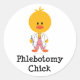 Cute Phlebotomy Chick t-shirts, tees, apparel, clothing, stickers, mugs and more keepsakes and phlebotomist and phlebotomy gifts with a yellow chick wearing a lab coat and pink scrubs holding a blood collection tube and needle. Click on the following link to see all of our cute and funny Chrissy H. Artwork © Chrissy H. Studios, LLC. All rights reserved.