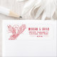 A unique address label to compliment the dragon and phoenix wedding suite. This version features a red outline illustration of a phoenix against a white backdrop. Besides this is your unique information in red.