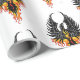 Tribal art black ink firebird/ phoenix with coloured flames in a backdrop of white