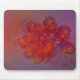 A repeated fractal pattern like the flaming feathers of the mythical firebird. Swirls of vivid orange, purple, and gold against a muted lavender and pale orange and pink backdrop.