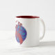 11oz Mug with a red lining depicting a red phoenix flying over a pool of blue water