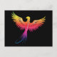 Phoenix bird rising in gradient colour spectrum with bright flame colours to represent the mythological fantasy phoenix rising from the flames with it's wings spread to begin a new life, a symbol of hope.