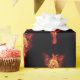 A woman that is a flame with wings. A phoenix woman in red, yellow and orange flames in a backdrop of black