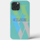 phone case blue green minimal monogram name modern simple gift Case-Mate iPhone Case bright color colorful fun design.