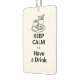 Add a splash of humour and refreshment to your everyday tech with this clean and stylish “Keep Calm and Have a Drink” in a design. Featuring a minimalist line illustration of a drink, apple, and other food, this artwork delivers a perfect blend of relaxation and appetite in a modern black-on-white layout. Whether you're a foodie, a drink lover, or just someone who appreciates chill vibes, this freshener makes a bold yet lighthearted statement. Ideal for food bloggers, drink enthusiasts, or anyone needing a daily reminder to slow down and sip something nice. Makes a fun and functional gift, too.