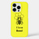 I Love Bees! is text at bottom. Image above is graphic of honeybee on honeycomb.