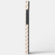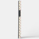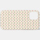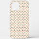 Phone case with a repeating pattern of red and green abstract floral shapes on a beige background. Design appears on both the back and horizontal views.