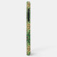 Phone case with an intricate green and brown leaf pattern, featuring circular designs and floral elements. The style is vibrant and nature-inspired.