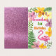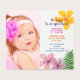 Tropical floral, green leaves and pink flamingo. Trendy, unique Luau 1st Birthday folded invitation with custom photo inside.