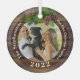 Add your photo and text to this wood-look printed Christmas ornament with a rustic vintage country theme. Pinecones and pine branches with wood plank images in the background. First Christmas Together as a married couple, along with your family married name or other special message.