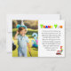 Celebrate a special little boy's third birthday with this charming photo golf-themed thank you card! Featuring a red golf cart parked beside a putting green this sweet design is loaded with playful details a festive birthday cake, presents and a bunch of bright helium balloons, including a big number 3 balloon.