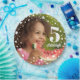 A fun custom photo 5th birthday paper plate with a customised name. Bold graphics of confetti in white to accent the birthday person's photograph.
