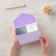 These are handy all-in-one wedding invitations with easy-to-tear perforated RSVP postcards. Just add your photo and change the text to fit your needs. Lilac colours shown. A QR code is also provided where you can include your wedding website, wedding registry, and more. Use the return address part of the template if you want the address printed directly on the RSVP postcard or you can opt for return address labels. Use the template to personalise.