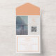 These are handy all-in-one wedding invitations with easy-to-tear perforated RSVP postcards. Just add your photo and change the text to fit your needs. Floral pattern design. Peach rose colour shown. A QR code is also provided where you can include your wedding website, wedding registry, and more. Use the return address part of the template if you want the address printed directly on the RSVP postcard or you can opt for return address labels. Use the template to personalise.