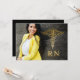 Faux gold caduceus medical staff and RN on the front over your photo, with editable text on the back. Use as an announcement or a graduation party invitation.