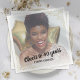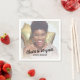 Personalised any age birthday party napkins featuring a large photo of the birthday girl / boy, gold glitter effect corners, their age, and name.