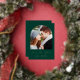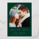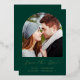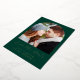 This simple, minimalist Save the Date card features a boho photo arch above the words "Save the Date" in elegant gold foil handwriting script, followed by the couple's names, wedding date and city in sans serif font on an emerald green background. Add a more detailed message with additional information on the reverse.