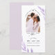 Delight your guests with this elegant Save the date bookmark. Unique design with couples names and photograph in striking arch frame and mauve pale purple hue watercolor foliage on the sides. If you would like to add an elegant ribbon on bookmark top area, there is a clear space on the top where a punch whole can be made. Modern hand written calligraphy details and attractive date format. Tasteful pale purple colour on the back.