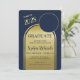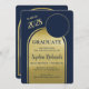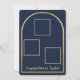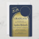 This elegant Graduation Party announcement features a double arch with blue lettering against a brushed gold background and a room for a photo of the honoree of this special occasion. The back of the card has room for three additional photos. Much to personalise to make appropriate for your honoree. Any design questions, just send a chat or an email to charmdesignstudio@rcn.com and we'll be delighted to assist. Also contact us if you wish the background colour to be changed to a school colour or favourite colour.