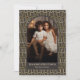 A retro Merry Christmas photo card in shades of gold and brown. The photo are is a mod arch with a beige border. The modern design includes arches and and a simple type for the main part of the text.