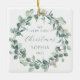 Celebrate baby's first Christmas with this keepsake ornament, featuring a watercolor wreath of green eucalyptus leaves. The word "Christmas" appears in delicate green handwriting script. Personalise the ornament with baby's name and the year in sans serif font on one side and your favourite photo on the other.