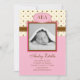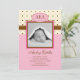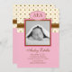 Modern custom birth announcement for a girl. Add your own photo and words. Features the baby initials monograms and a cute polka dots background in pink and brown. Classy yet playful.