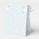 A photo baby shower party favour box. Thank you elegant script typography. Personalise the name and the date. Blue colours for a baby boy babyshower party celebration. Great party supplies for a new baby. There is a white star pattern on the back side of the favour box.