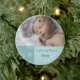 Baby's first christmas ornament customisable with your own baby photo in elegant turquoise with festive snowflake pattern. A stylish christmas gift for any new mum.