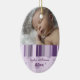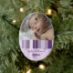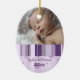 Baby's first christmas ornament customisable with your own baby photo in purple with festive snowflakes and stripes pattern. A memorable christmas gift for any new mum.