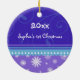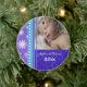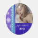 Baby's first christmas ornament customisable with your own baby photo in modern blue, purple and white with festive snowflakes and swirls pattern. A memorable christmas gift for any new mum.
