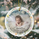 Customer specific, Photo Baby's First Christmas – Cute Floral Wreath, Watercolor, Ceramic Ornament.