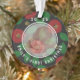 Photo Baby's First Christmas Floral Ornament. Capture the magic of your little one's very first Christmas with this adorable floral photo acrylic ornament. Featuring your sweet baby's photo surrounded by a charming dark background adorned with red floral accents and green leaves, this ornament is a perfect keepsake. The text name and the year are beautifully integrated, making it a unique memento of this special milestone. This durable acrylic ornament will add a festive and personal touch to your holiday tree for years to come, celebrating precious baby's first holiday.