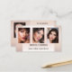 An elegant appointment business card featuring 3 photos of your choice (optional) framed by a peach pink design on the front. On the back is space for another photo with lines to add appointments. The flower on the back is a separate image and can be dragged, scaled or also deleted if you do not need it. A beautiful business card for a beautician or make-up artist.