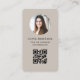 Modern minimal business card featuring a soft beige colour palette with a photo and QR code for quick and easy contact sharing. Designed to help clients instantly save your details, connect on social media, or view your portfolio. Perfect for professionals, creatives, and small business owners seeking a clean, warm, and sophisticated brand presence. Editable text, photo, and QR code destination. Clean print-ready layout.