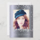 An invitation for a 21st birthday party. Template for your own photo. On front: Faux silver glitter text overlay: Congrats. The text is written with a modern hand lettered style script. Text: 21st (or any age) Birthday. Decorated with faux diamond sprinkle. Faux silver metallic looking background.