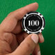 These custom poker chips feature a bold number on the front instead of initials, which can be personalized with any number up to four digits. The front has a sleek black background with crisp white fonts for a classic, striking look. The back includes space for a photo, making them perfect for weddings, mancaves, bachelor parties, or as a memorable gift. All text, numbers, and details can be fully customized to fit your style or event theme.