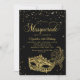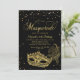 Photo Black Gold Glitter Masquerade Birthday Invitation
