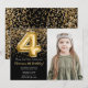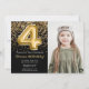 Photo Black Gold Kids Girl 4th Birthday Party Invitation