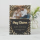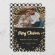 Photo Black White Gold Snow Stars Plaid Holiday Card