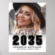 A classic yet modern horizontal graduation announcement with a timeless black-and-white look. The front features an oversized “Class of” paired with “2025” in bold black lettering for a strong, elegant statement. Subtle script accents add a touch of softness, while two graduation cap icons bring in a celebratory feel. Below, there’s space for the graduate’s name and school, keeping the layout balanced and easy to read.