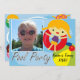 If it's a pool party birthday party or a party at the beach, you'll love these water theme easy to customise birthday invitations complete with a blonde haired girl in a swim tube on front and several boys and girls on the back, blue water background, beach balls, and areas to easily add your child's photo and birthday party specifics!