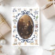 A charming watercolor Christmas photo card framed with blue ribbons, nutcracker toys, and cosy winter details. Featuring soft cream and navy tones, this design captures a timeless blend of classic holiday tradition and elegant charm — perfect for sharing your family’s festive memories in refined Christmas style.