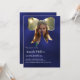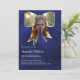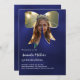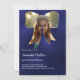A navy blue, uneven coloured background, decorated with a bow shaped photo frame. Personalise and add a name and party details.