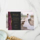 Send your family and friends a special wedding thank you with these custom photo cards. On the left, the words "thank you" appear in elegant gold-coloured handwriting script typography on a slate black background over a brief, editable message of thanks to your wedding guests in copperplate font, with your names below. A burgundy red watercolor agate border trimmed with faux gold glitter decorates the left edge. The reverse side provides space for a second, horizontal photo.