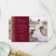 Photo Burgundy Red Gold Glitter Script Wedding Thank You Card