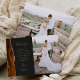 Send your family and friends a special wedding thank you with these custom photo cards. On the left, the words "thank you" appear in elegant gold-coloured handwriting script typography on a slate black background over a brief, editable message of thanks to your wedding guests in copperplate font, with your names below. A burnt orange watercolor agate border trimmed with faux gold glitter decorates the left edge. The reverse side provides space for a second, horizontal photo.