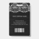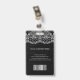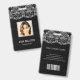 Modern photo business ID identification card with barcode over white floral lace background. Additional information can be added to the backside of this business ID badge